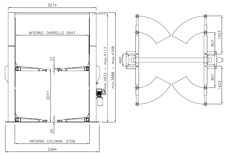 OMA 210I/42 SM - Подъемник двухстоечный электрогидравлический 4200 кг Грузоподъемность - 4200 кг. Высота колонны - 4168 мм. Высота подъема - 2011 мм. Размах передних лап - 1423/807 мм. Размах задних лап - 1423/807 мм. Клиренс - 95 мм. Двигатель - 2.2 кВт Время спуска/подьема - 43 с. Вес - 745 кг.