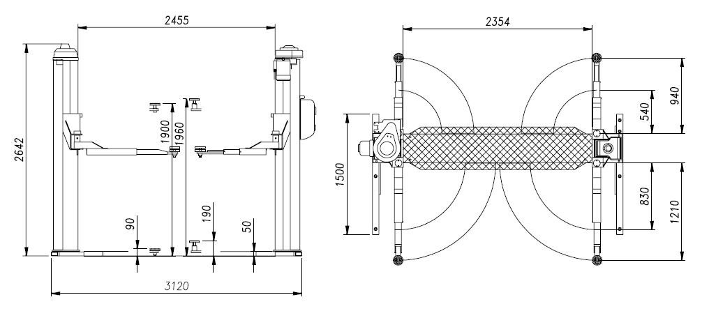 Высота подъема - 1900 мм.