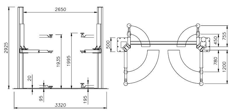 OMA 514C - Подъемник двухстоечный электрогидравлический 3200 кг Грузоподъемность - 3200 кг. Высота колонны - 2925 мм. Высота подъема - 1935 мм. Размах передних лап - 1200/780 мм. Размах задних лап - 755/450 мм. Клиренс - 95 мм. Двигатель - 2.2 кВт Время спуска/подьема - 45 с. Вес - 650 кг.